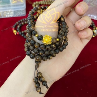 Chuỗi Trầm Hương Sánh Chìm 108 hạt mix charm Hoa Sen vàng - 6mm & 8mm - Vòng tay Nam Nữ - Vòng gỗ tự nhiên