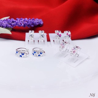 BÔNG TAI BẠC BÉ GÁI TREO HOA ĐÁ NHIỀU MÀU