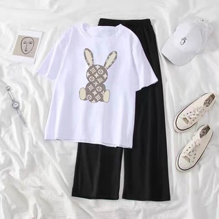 Sét Áo Thỏ in 3D + quần suông trơn, Áo thun from rộng, Chất đẹp không xù, quần suông ống rộng, Sét bộ mặc ở nhà - MODY