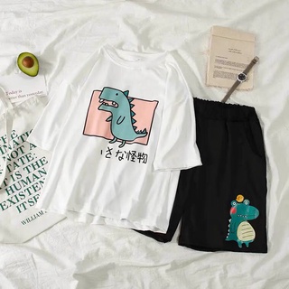 Sét Áo Gấu Phông khủng long ô vuông + quần đùi đen, Áo thun from rộng, Chất đẹp không xù, Sét bộ mặc ở nhà - MODY