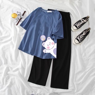 Sét Áo Gấu cầm bóng +quần suông trơn, Áo thun from rộng, Chất đẹp không xù, quần suông ống rộng, Sét bộ mặc ở nhà - MODY