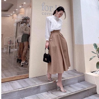 Chân váy công sở nữ - chân váy midi dáng xòe đính cúc túi