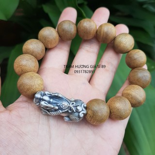 Vòng Tay Trầm Hương 14ly Mix Tì Hưu Bạc Thái- Hàng Loại 1