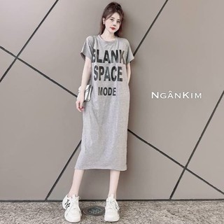 váy suông nữ dáng dài in chữ blank phom rộng 3 màu