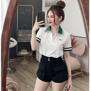 Áo polo nữ trắng cổ xanh, áo thun nữ polo phối cổ năng động
