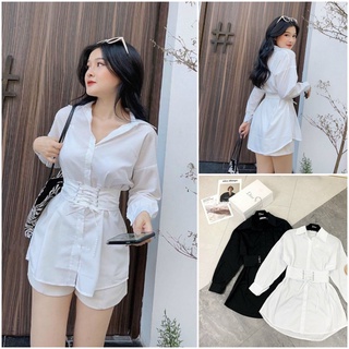 set đồ nữ sang chảnh cá tính mix áo sơ mi kèm đai bản to lồng dây và quần đùi mặc thoải mái