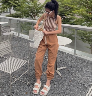 set bộ đồ nữ áo 3 lỗ kẻ kèm quần jogger bo gấu 3 màu năng động