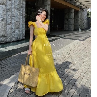 váy maxi hoa vàng đan lưng sexy xinh xắn