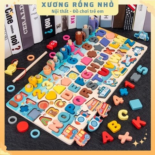Bảng gỗ câu cá đa năng 7in1 tiếng việt, 7 dòng câu cá học chữ, học số, thế giới xung quanh