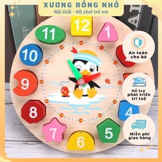 Đồ chơi đồng hồ gỗ cho bé, đồ chơi gỗ phát triển trí tuệ, giáo cụ montessori
