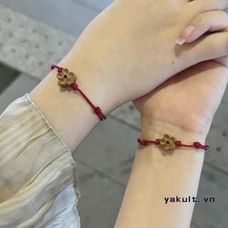 yakult Vòng Đeo Tay May Mắn Bằng Gỗ Đào Khắc Họa Tiết Hoa Mận Xinh Xắn