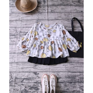 ÁO HỌA TIẾT CỔ PHỐI REN TAY BỒNG
