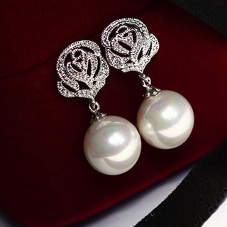 Khuyên tai dáng dài hình hoa hồng có gắn ngọc trai sang trọng