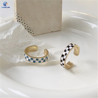 Nhẫn Kim Loại Họa Tiết Sọc Caro Trắng Đen Thời Trang Retro Cho Nữ