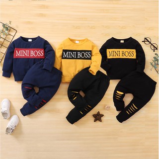 Bộ Trang Phục 2 Mảnh Áo Thun Tay Dài In Chữ + Quần Dài Thể Thao Cho Bé Trai