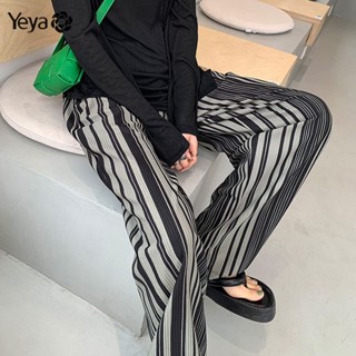 Quần dài nữ YEYA ống rộng lưng cao họa tiết kẻ sọc thời trang