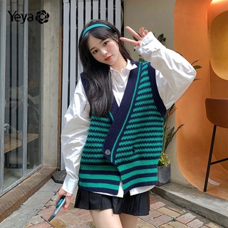 Áo khoác YEYA sát nách dệt kim cổ chữ V họa tiết kẻ sọc nhiều màu sắc tùy chọn thời trang dành cho nữ