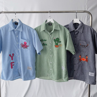 Bộ đồ sơ mi tay ngắn YELLOW FLICKER wash jeans logo bạch tuộc unisex