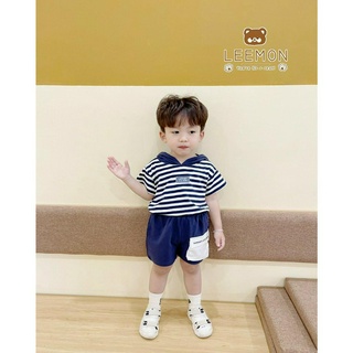 Bộ thun cotton cá sấu kẻ sọc cho bé trai lịch lãm 5-12kg