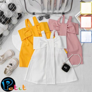 Đầm hai dây bé gái xếp ly đính nơ điệu đà phong cách