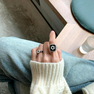 Nhẫn Hai Lớp Họa Tiết Hình Học Màu Đen Cá Tính