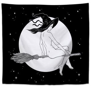 Thảm Treo Tường Trang Trí Chủ Đề Mặt Trăng Trắng Đen