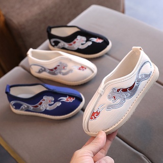 Giày vải đế bằng thêu họa tiết kiểu Trung hoa cho bé trai 2-12 tuổi
