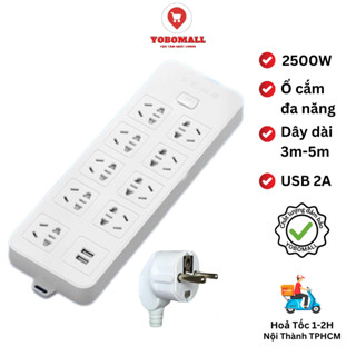 Ổ Cắm Điện USB Đa Năng Công Suất Cao 2500W, Chống Giật, Cháy, Nổ Dây Dài 3m - Yobomall
