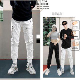 Quần Túi Hộp Nam Nữ - Chất Liệu Kaki Co Giãn Dáng quần suông màu trắng - cạo cao tôn dáng mẫu quần cargo pants ống rộng