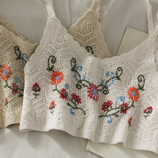 Áo Croptop Hai Dây Dệt Kim Dáng Rộng Thêu Hoa Nhiều Màu Sắc Gợi Cảm Thời Trang Mùa Hè Cho Bạn Gái
