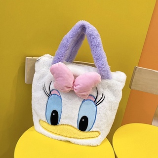 Túi Xách Lông Nhung Mềm Sức Chứa Lớn Thiết Kế Hoạt Hình Dễ Thương Có Khóa Kéo Cho Nữ