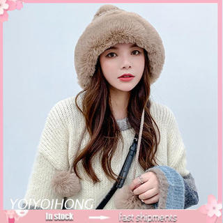 Mũ Len Dày Dặn Giữ Ấm Mùa Đông Chống Gió Màu Trơn Gắn Quả Bông Dễ Thương Cho Nữ