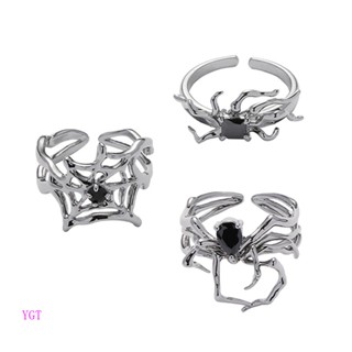 Ygt Nhẫn Hở Hình Mạng Nhện Đính Đá Zircon Màu Đen Phong Cách Gothic Punk Cho Nữ