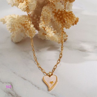Ygt Vòng cổ Bằng Thép Không Gỉ Mặt Hình Trái Tim Vỏ Sò Màu Vàng Thời Trang Cho Nữ