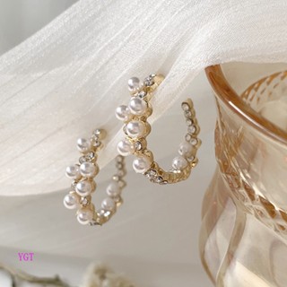 Ygt Khuyên Tai Vòng Xoắn Đính Ngọc Trai Nhân Tạo Bằng Kim Loại Thời Trang Dự Tiệc Ngọt Ngào