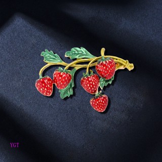 Ygt Ghim Cài Áo Tráng Men Họa Tiết Dâu Tây / Hoa / Trái Dâu Dễ Thương Dùng Để Trang Trí Nón / Khăn Cho