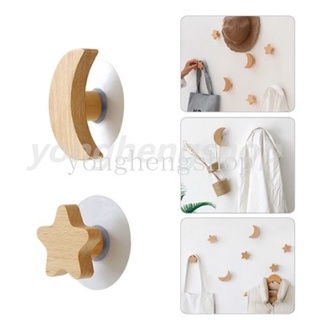 Móc Treo Đồ Gắn Tường Hình Ngôi Sao Mặt Trăng Bằng Gỗ Độc Đáo Trang Trí Nhà Cửa