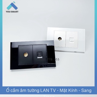 Mặt ổ cắm VUÔNG kính cường lực LAN + TV