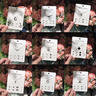 Set 4 đôi khuyên tai + dây chuyền mạ bạc đính đá sang trọng hợp thời trang
