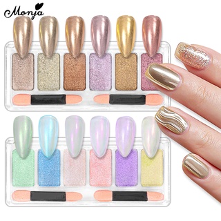 MONJA Hộp 6 Ngăn Bột Tráng Gương Màu Vàng Cực Quang Trang Trí Móng Tay Nghệ Thuật