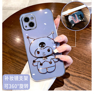 Ốp Điện Thoại Silicone In Hình Kuromi 3D Kèm Gương Trang Điểm Cho iPhone 14 14plus 13 14promax