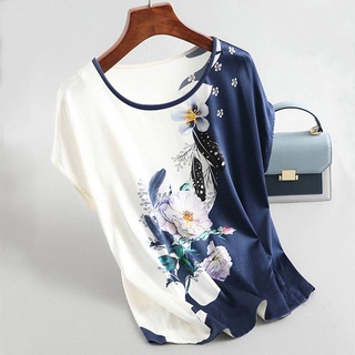 Áo thun tay ngắn in họa tiết thời trang cho phụ nữ trung niên
