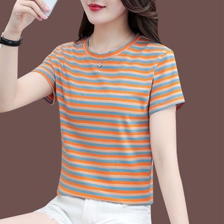 Áo Thun Cotton Ngắn Tay Họa Tiết Kẻ Sọc Đơn Sắc Thời Trang Mùa Hè Cho Nữ