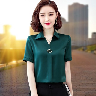 Áo Thun Lụa Ngắn Tay Cổ Chữ v Thời Trang Mùa Hè Cho Nữ