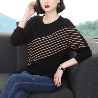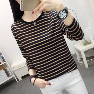 Áo Thun Tay Dài Dáng Rộng Kẻ Sọc Ngang Trẻ Trung Hợp Thời Trang Cho Bạn Gái Trung Niên