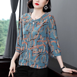 Áo Chiffon Tay Ngắn Thời Trang Mùa Hè Cho Phụ Nữ Trung Niên