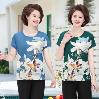 Áo thun tay ngắn dáng rộng in họa tiết thời trang mùa hè cho phụ nữ trung niên