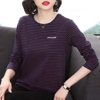 Áo Thun Tay Dài Kẻ Sọc Plus Size Thời Trang Thu Đông Cho Nữ Trung Niên