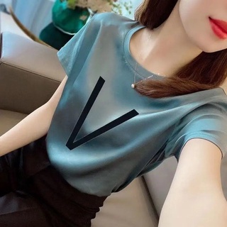 Áo Thun Lụa Lạnh Tay Ngắn Cổ Chữ V Thời Trang Mùa Hè Mới Cho Phụ Nữ Trung Niên
