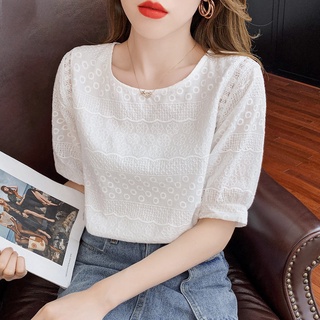 Áo Sơ Mi Chiffon Tay Lửng Phối Ren Dáng Rộng Phong Cách Mới Dành Cho Nữ